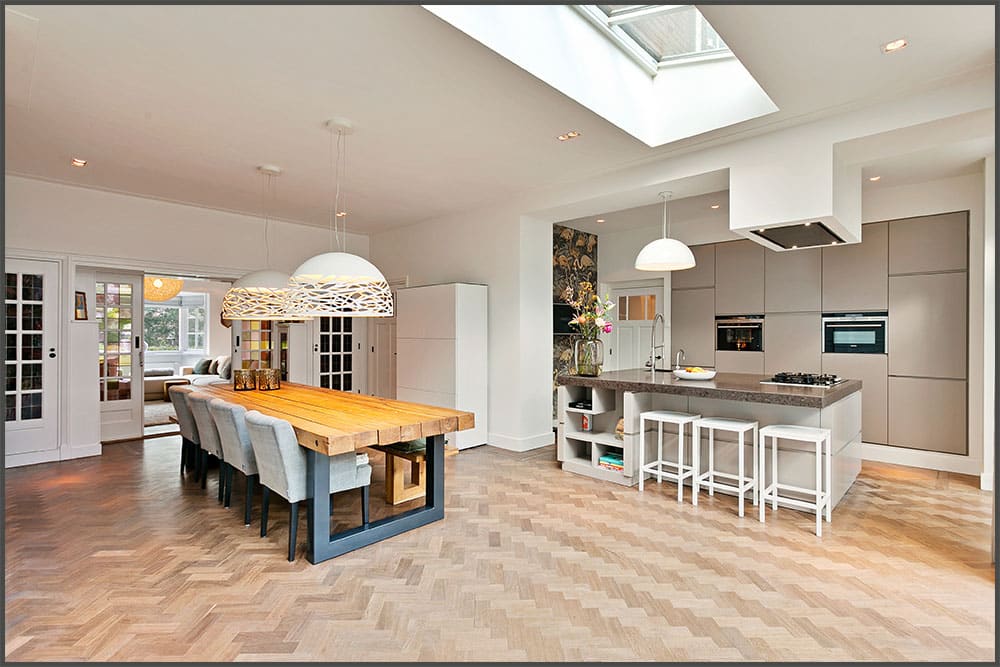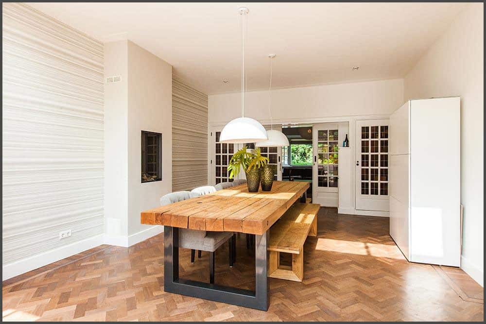 Voor dit project hebben we de authentieke jaren ’30 woonvilla geheel gerenoveerd. Door een achteruitbouw over de gehele breedte is er voldoende ruimte ontstaan om de keuken te verplaatsen en een grote leefkeuken met openstaande deuren naar het terras te maken.